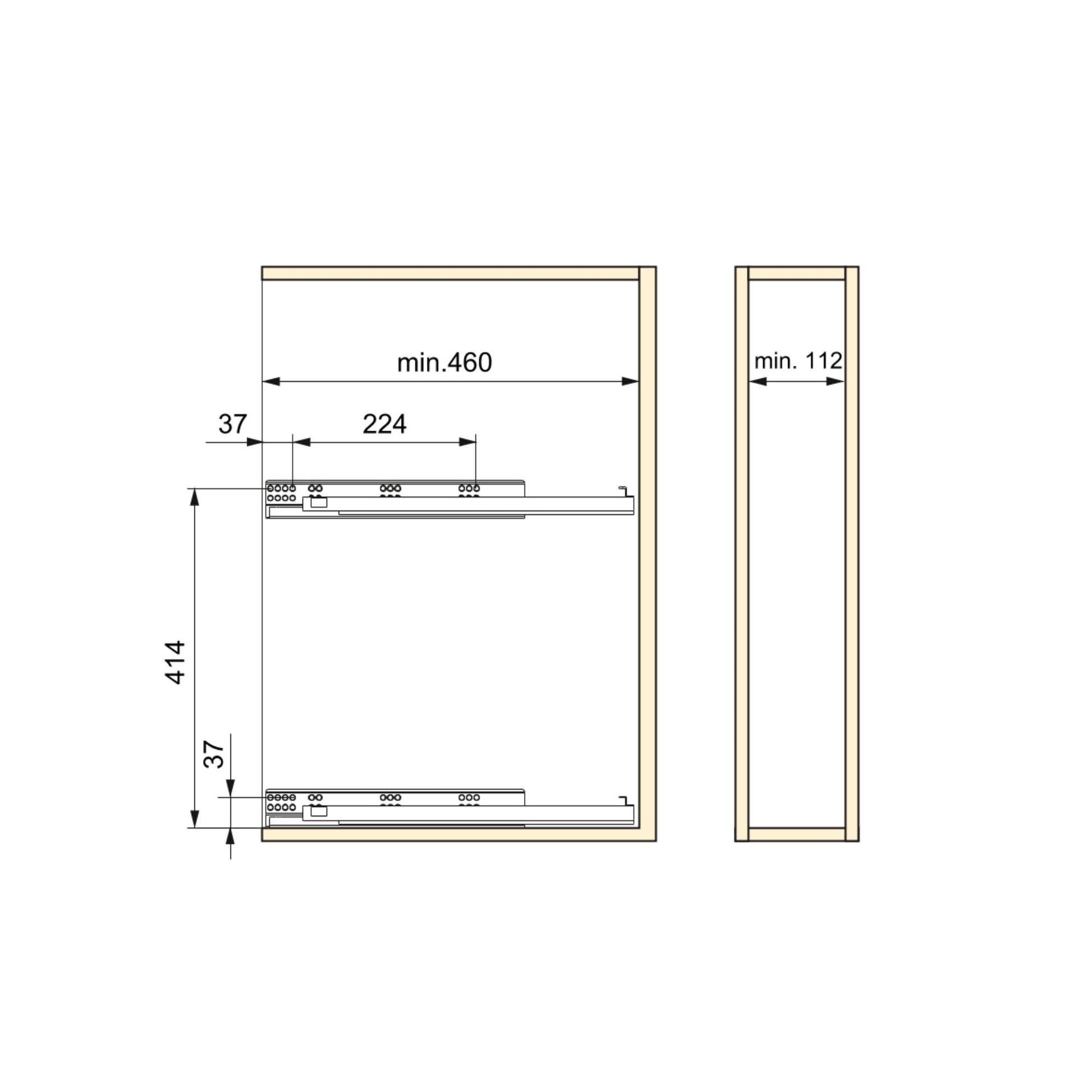 - Válido para módulos de 112mm de ancho interior mínimo y profundidad mínima de 460mm.