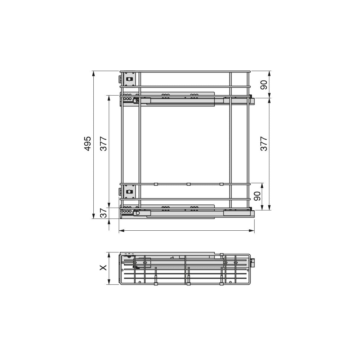 Fácil instalación: fijación en el lateral izquierdo del mueble y regulación total de la puerta (5D). La estructura está fabricada en acero cromado con 2 niveles e incorpora guías de rodillos con extracción total y cierre suave que permiten un suave deslizamiento del sistema y evitan los portazos. El cesto inferior dispone de 4 huecos para la organización de las botellas. Capacidad de carga de hasta 25kg.